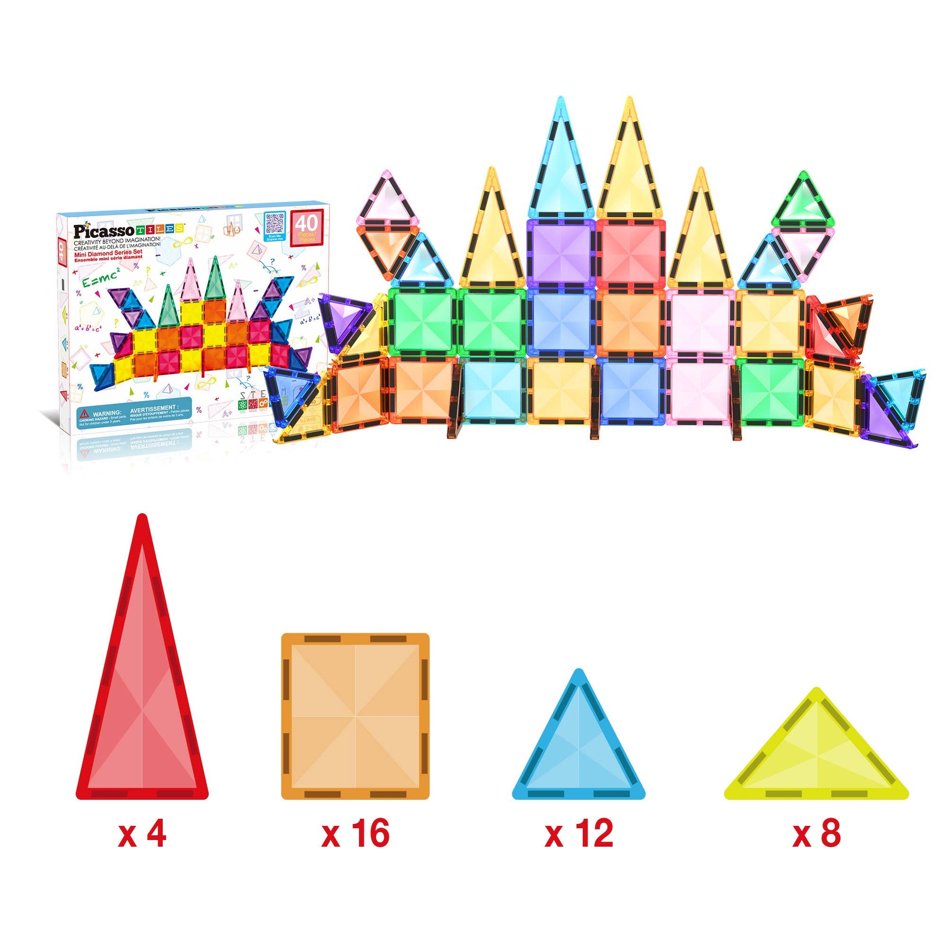 DREAM BIG & BUILD BIG - No limitations, scalable to build as big as desired by adding more pieces to create the masterpiece. The magnetic building block playset MINI series features 40 pieces of TRAVEL-SIZE tiles with a unique diamond surface to be used as a stand-alone set or in conjunction with other PicassoTiles MINI magnet construction toys as integrated add-on pieces to offer OPEN-ENDED POSSIBILITIES of structures to nurture creativity and intelligence.